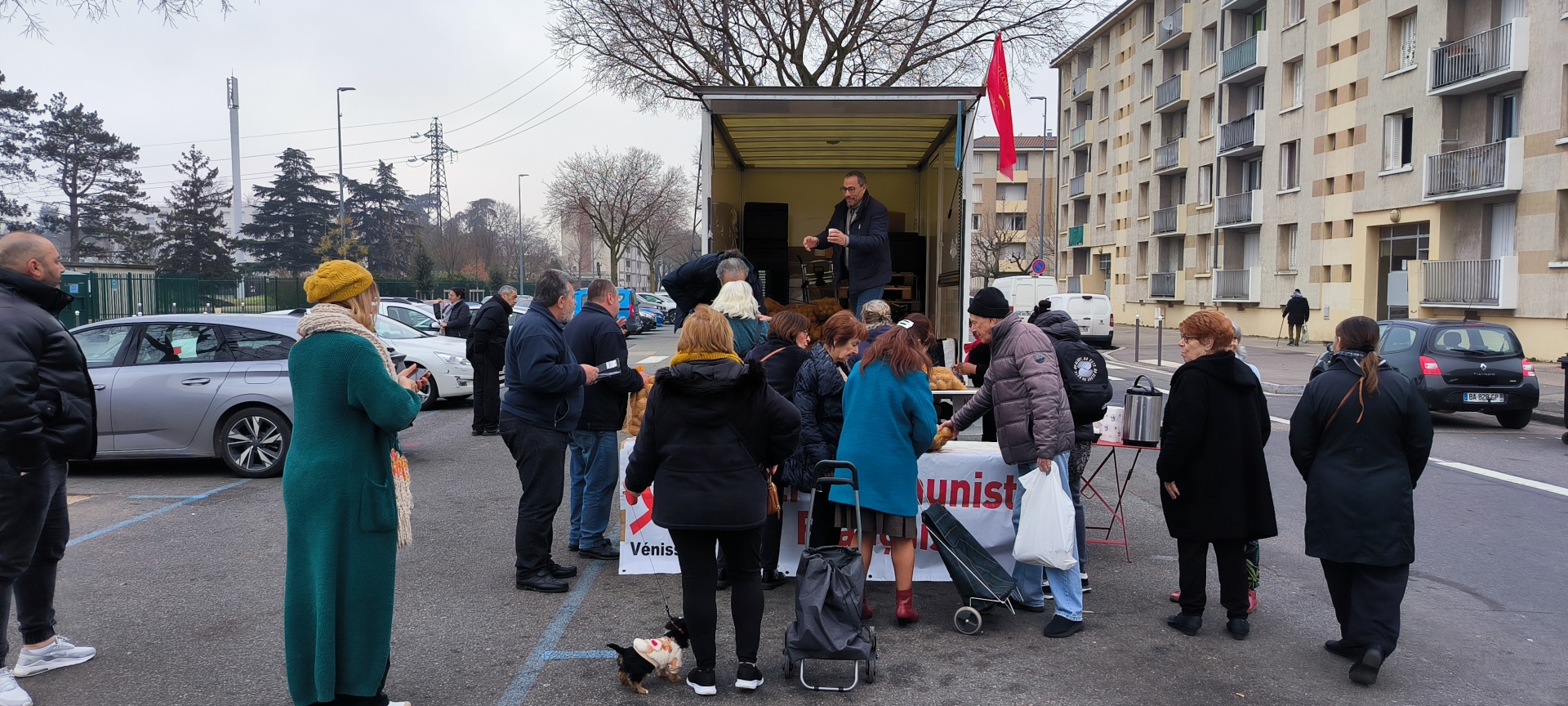 D’abord beaucoup d’habitants nous ont demandé « vous le refaites quand ? » Les militants communistes ne peuvent pas se transformer en revendeurs en direct et la législation sur le déballage ne permet d’organiser un tel évènement que de manière exceptionnelle… Par contre, on peut se demander comment faire pour que les actions de type AMAP ou achat en vrac se développent à Vénissieux, dans une démarche large ouverte à tous comme ce que nous avons fait. Sujet de discussion pour notre futur agenda 2030 et son plan d’action, notamment son objectif 11 Promouvoir une agriculture et une alimentation plus durables.