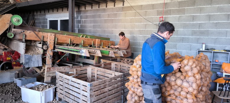 Enfin, il insiste avec force. On ne peut pas faire du maraichage bio sur de petites surfaces. Lui, il lui faut pour une production plusieurs hectares. Et il a tout un équipement pour trier les tailles, mettre en sac, qui n’est pertinent que pour faire du volume. Cette année, il a produit 150 tonnes de pommes de terre sur 3 hectares.