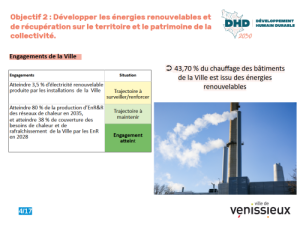 Pour la part des énergies renouvelables, nous atteignons 43,70 % pour le chauffage de notre patrimoine, pour un objectif à 38 %, c’est donc très positif et c’est possible à la fois grâce au mix énergétique du réseau de chaleur et au raccordement de la majorité des bâtiments communaux.