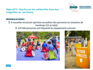 L’objectif 9 c’est renforcer les solidarités face aux inégalités du territoire. On sait que les inégalités sont encore plus fortes à une échelle plus vaste, mais elles existent aussi à l’échelle de la ville, c’est tout l’enjeu du contrat de ville métropolitain et de son adaptation locale, qui avait fait l’objet d’un gros travail, que je suis très heureux d’avoir piloté comme adjoint politique de la ville. C’est aussi la poursuite des actions sur le handisport, et l’adaptation au handicap de beaucoup d’activités. Et puis un chiffre, 300 000 personnes quasiment ont fréquenté les équipements culturels, ce qui veut dire que nos équipements répondent massivement à une attente et une demande des habitants.
