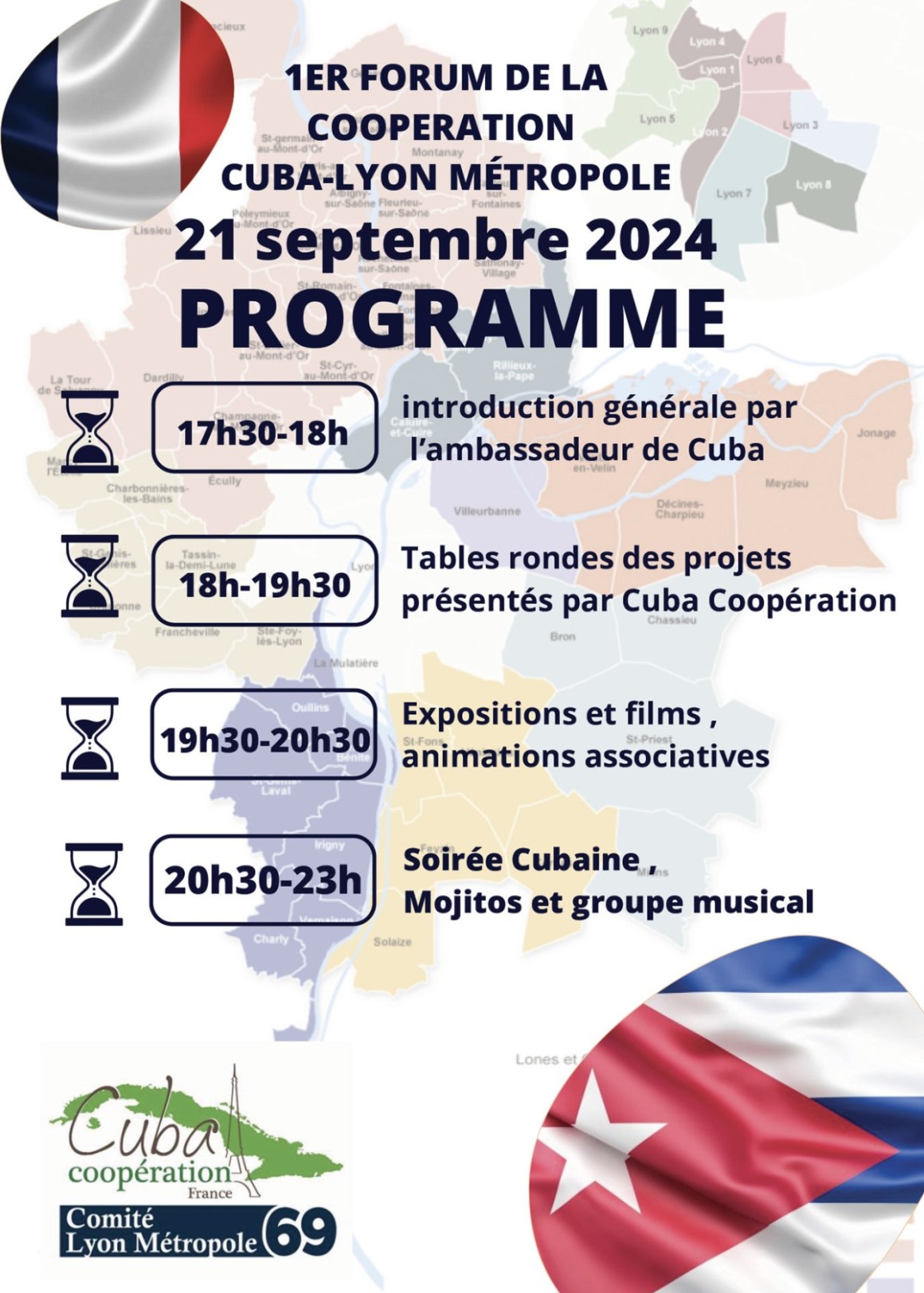 Merci à l’équipe de Cuba Coopération qui présentait deux actions concrètes en appelant à l’aide individuelle comme collective notamment des communes, pour le développement d’un centre culturel de la jeunesse, et pour une maison des femmes, coopération engagée avec Neuville sur Saône, Vénissieux et Villeurbanne, et des contacts en cours avec d’autres communes…