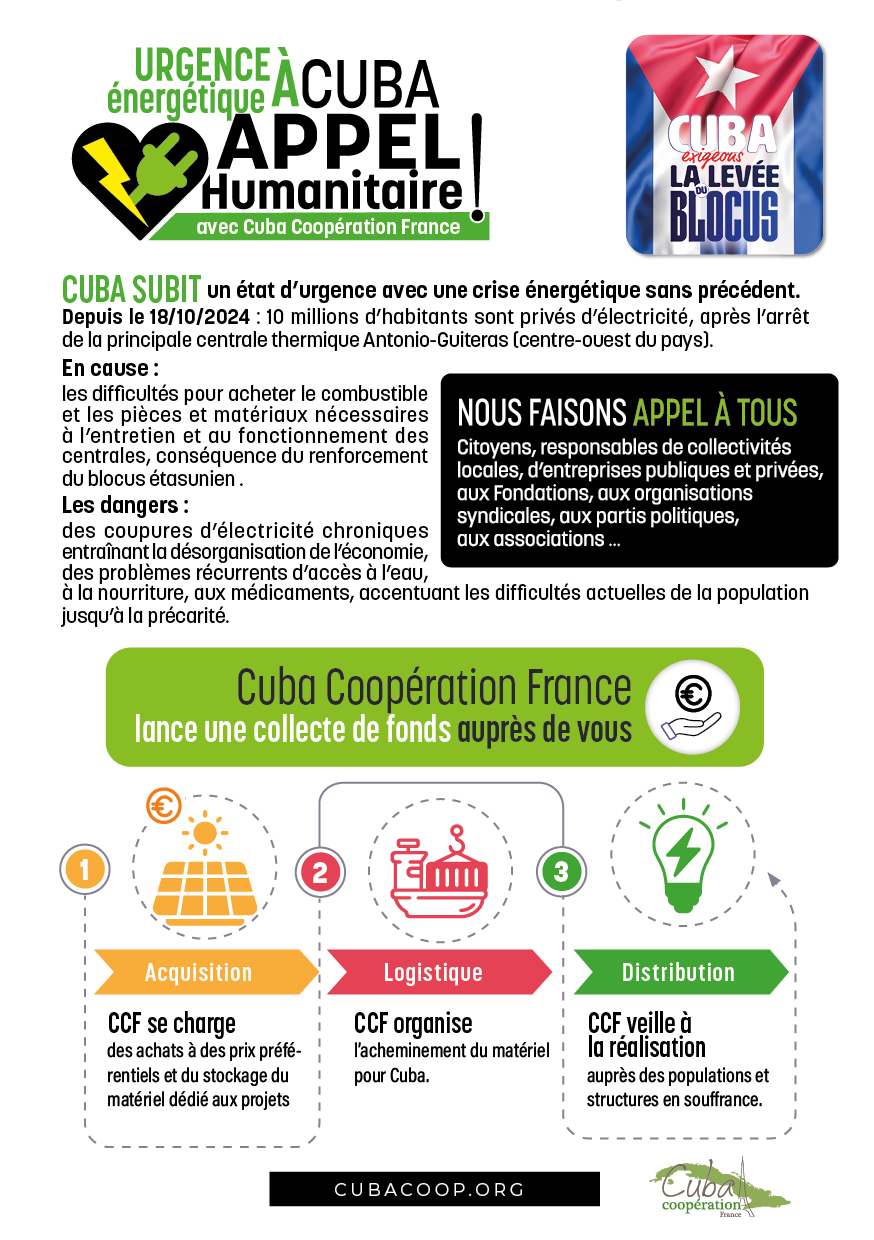 Face à cette crise humanitaire, l’assemblée générale de notre association lance un appel pour venir en aide d’urgence à la population cubaine.