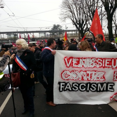 Reste que nous avons fait entendre le message Vénissian. Nous ne nous laissons pas prendre au piège de la gentille Marine et du méchant Benedetti, comme le clamaient les jeunes communistes : F comme Fasciste, N comme Nazis !. Et nous ne cèderons pas à ceux qui utilisent le FN pour faire taire les critiques sur le gouvernement et diviser la droite. Nous savons que la seule réponse utile à la droite et l’extrême-droite, c’est le rassemblement populaire pour une autre politique, une autre société.