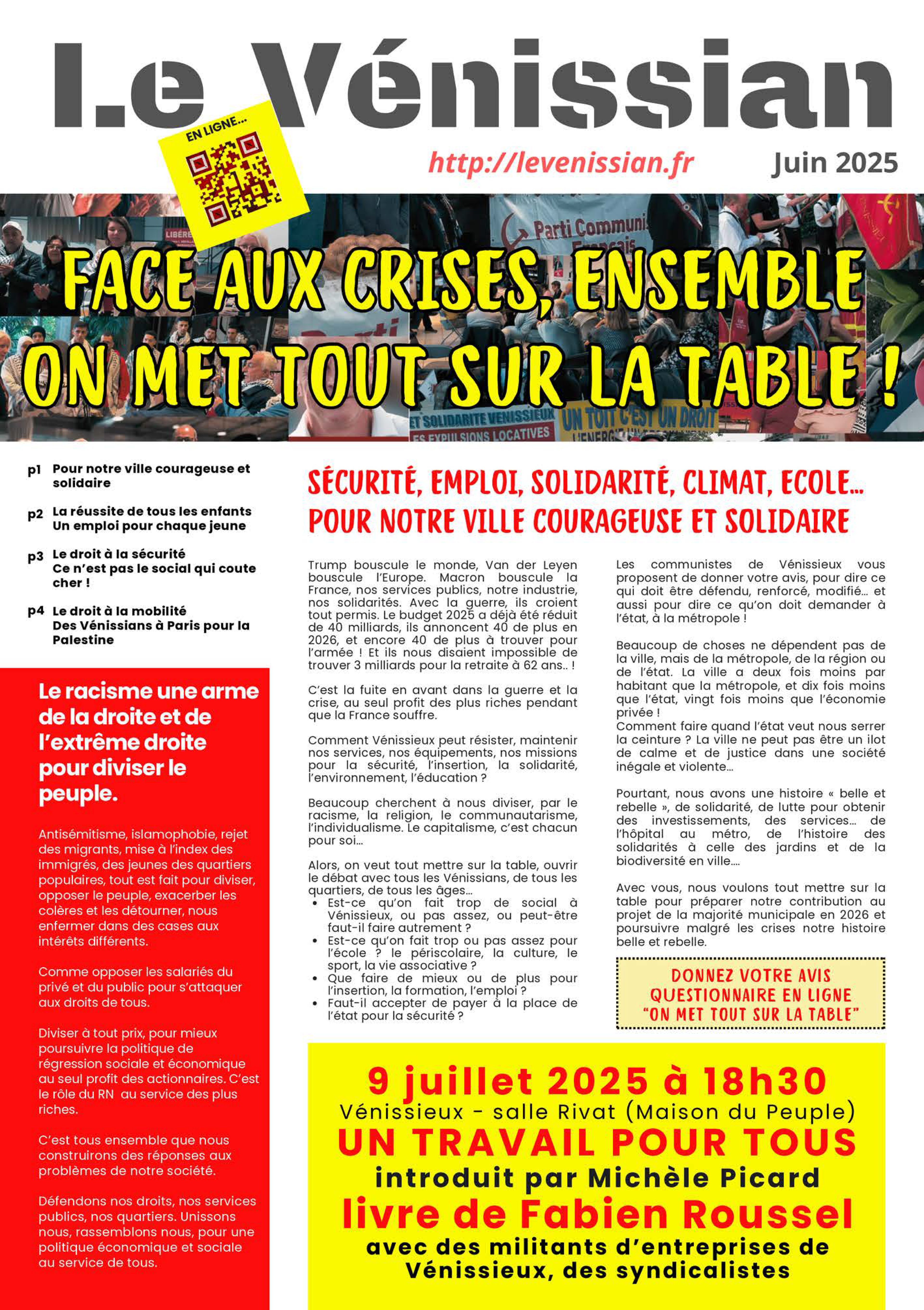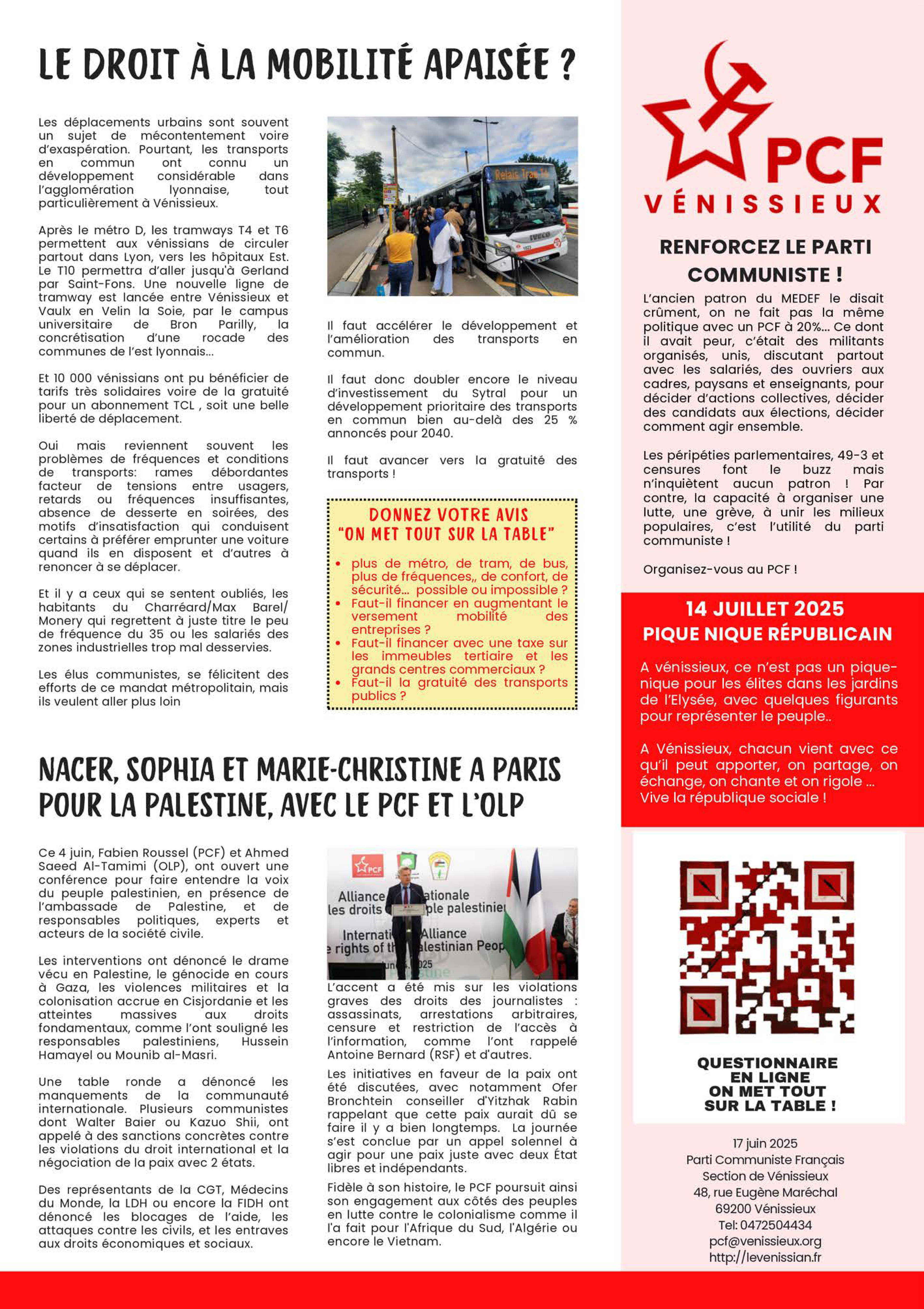Les communistes de Vénissieux vous proposent de donner votre avis, pour dire ce qui doit être défendu, renforcé, modifié… et aussi pour dire ce qu’on doit demander à l’état, à la métropole !