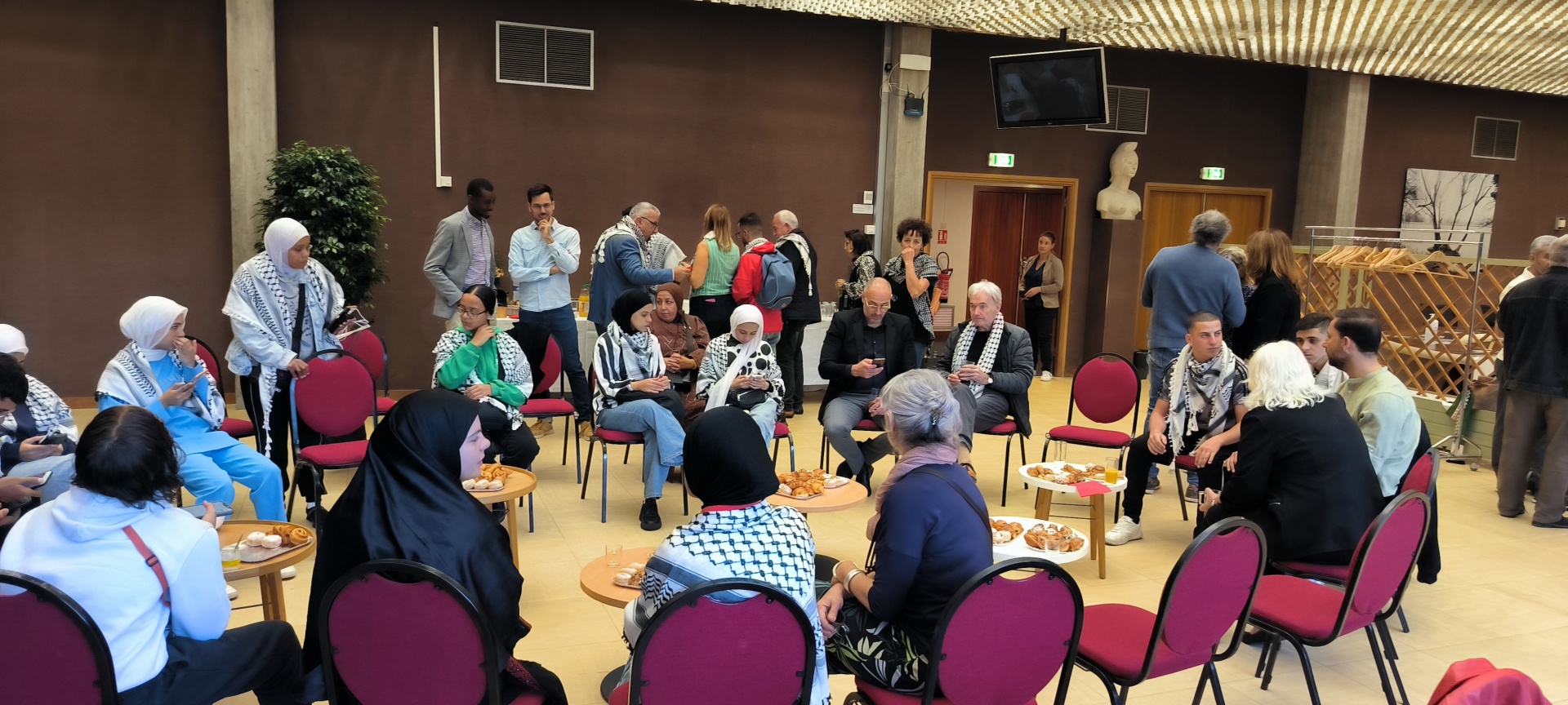 Et notre camarade Sophia Brikh a conclu la soirée en remerciant tous les participants et associations et en lançant à plusieurs reprises un « Vive la Palestine, la Palestine Vivra, la Palestine Vaincra » repris avec force par toute la salle.