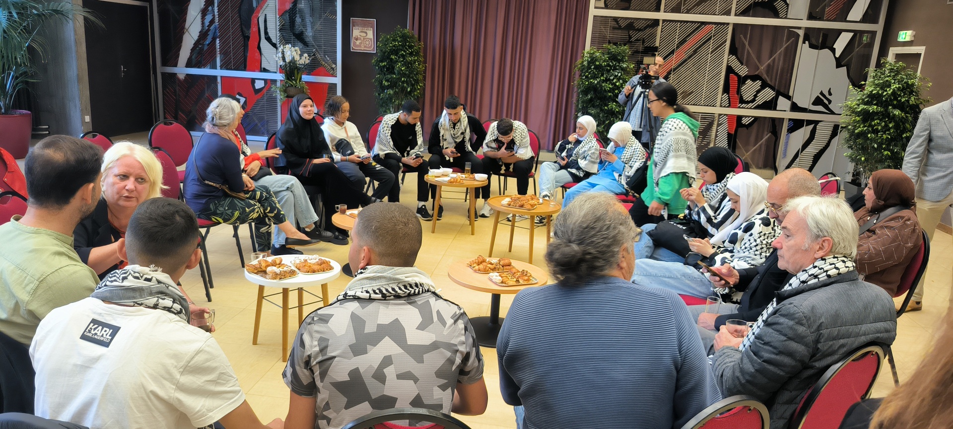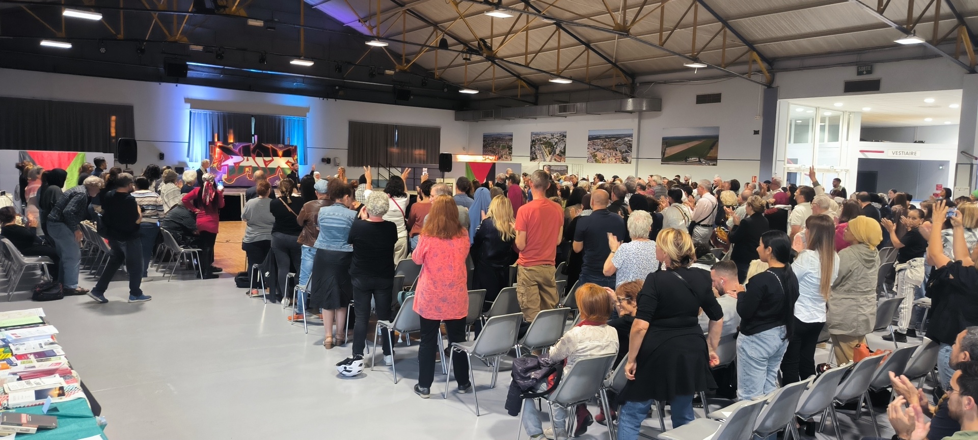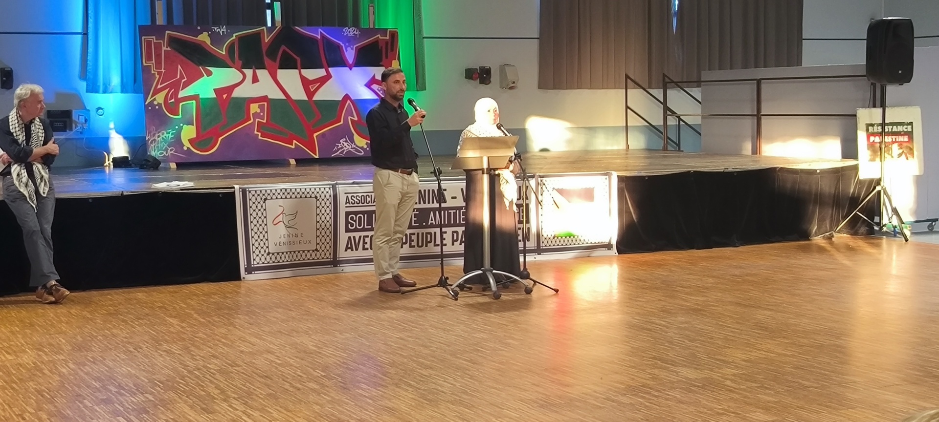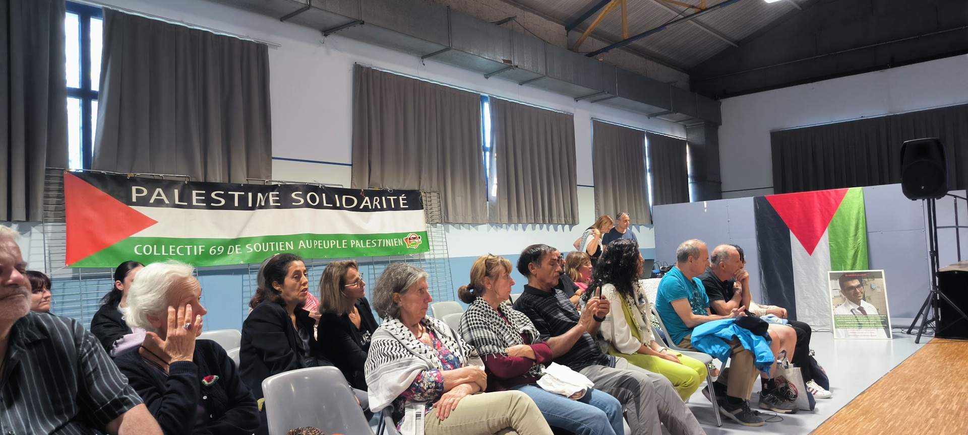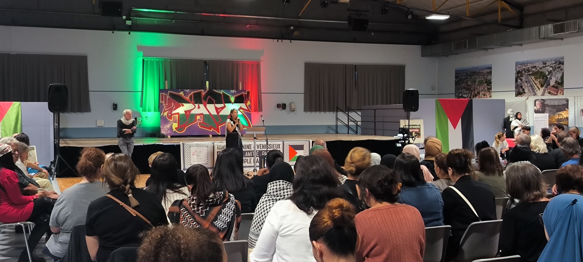 Encore un grand succès pour la Palestine a Vénissieux, plus de 600 personnes à l’inviation de l’association Jénine-Vénissieux et du collectif Palestine 69, avec avec les jeunes danseurs du camp d’Aksar, le témoignage bouleversant de madame Shakura, dont le fils travaille à Vénissieux et a pu la faire sortir de Gaza il y a 4 mois, mais qui dira avec émotion que son âme y reste avec ses enfants et ses proches dans les décombres.