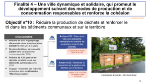 En tout cas, nous prenons pour ce qui concerne la ville des engagements forts, réduire de moitié le gaspillage alimentaire dans les cantines, réduire chaque année de 1,5% les déchets des services, et poursuivre la démarche « marchés propres » expérimentées aux minguettes depuis 2022 et en pleine discussion avec la métropole pour la généraliser, avec tout l’enjeu du financement, entre communes responsables des marchés et métropole responsables de l’agriculture et des déchets…