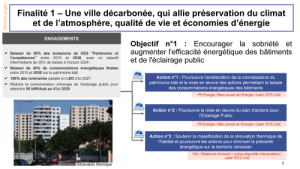 Sur la première finalité, le premier objectif concerne l’énergie avec des engagements marquants