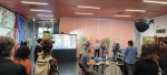Cette réunion était la dernière consacrée à la rédaction de cette convention locale, et il était important de marquer symboliquement la fin de cette année de travail partenarial et participatif avec un évènement sympathique et c’est donc un studio de télé qui était installé dans le grand hall en mairie que les participant au COPIL ont découvert en sortant de la salle du conseil…