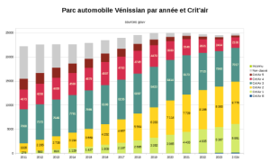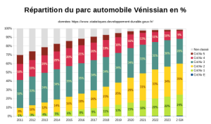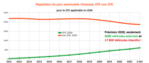 Et ca ne va pas s’améliorer rapidement. Le nombre de Crit’Air1 n’augmente que de 2 points par an. Pour arriver à la moitié du parc au rythme actuel, il faudrait attendre encore 13 ans ! En 2028, quand les Crit’Air 2 seront interdits, ce seront 17 000 véhicules vénissians interdits ! En trois ans, il faudrait à l’échelle vénissiane transformer les conditions de mobilité de la moitié des familles ? impossible ! La réaction dans la consultation de début 2023 traduisait le bon sens populaire, on n’aura pas le choix, on prendra le risque, ou on n’ira plus à Lyon…