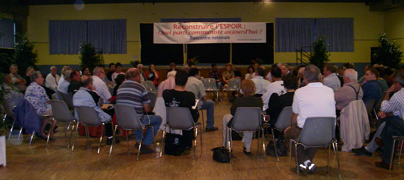 • en début d’après-midi, une discussion générale sur les points forts qui nous rassemblent : la nécessité de se battre dans les luttes et la perspective pour une réelle souveraineté populaire, et donc le refus de toute constitution européenne, la dénonciation des mythes de l’Europe sociale, le refus de donner à la question des alliances la primauté sur les combats à mener, sur la nécessité d’un parti révolutionnaire dont le fonctionnement ne soit pas calqué sur les institutions, l’importance que ce parti soit à l’image de la classe ouvrière (au sens le plus large) de notre temps dans toute sa diversité, à l’image d’un peuple depuis toujours nourri des migrations de toute la planète, un parti des entreprises et des quartiers… et donc évidemment, lié à cela, le refus de la liquidation des idéaux et du patrimoine communistes français. La plupart de ces questions n’ont pas de réponses faciles, les déclarations ne remplacent pas la confrontation théorique et pratique : quelle forme d’organisation, quel parti, quelles front de lutte au niveau national et international… De nombreuses analyses utiles existent, sur le mouvement du capital, les confrontations entre impérialismes, les luttes de classes, les rapports de force dans l’entreprise, les représentations idéologiques, la place des médias… mais le travail collectif pour en construire une cohérence tournée vers la pratique et le rassemblement des communistes est devant nous…