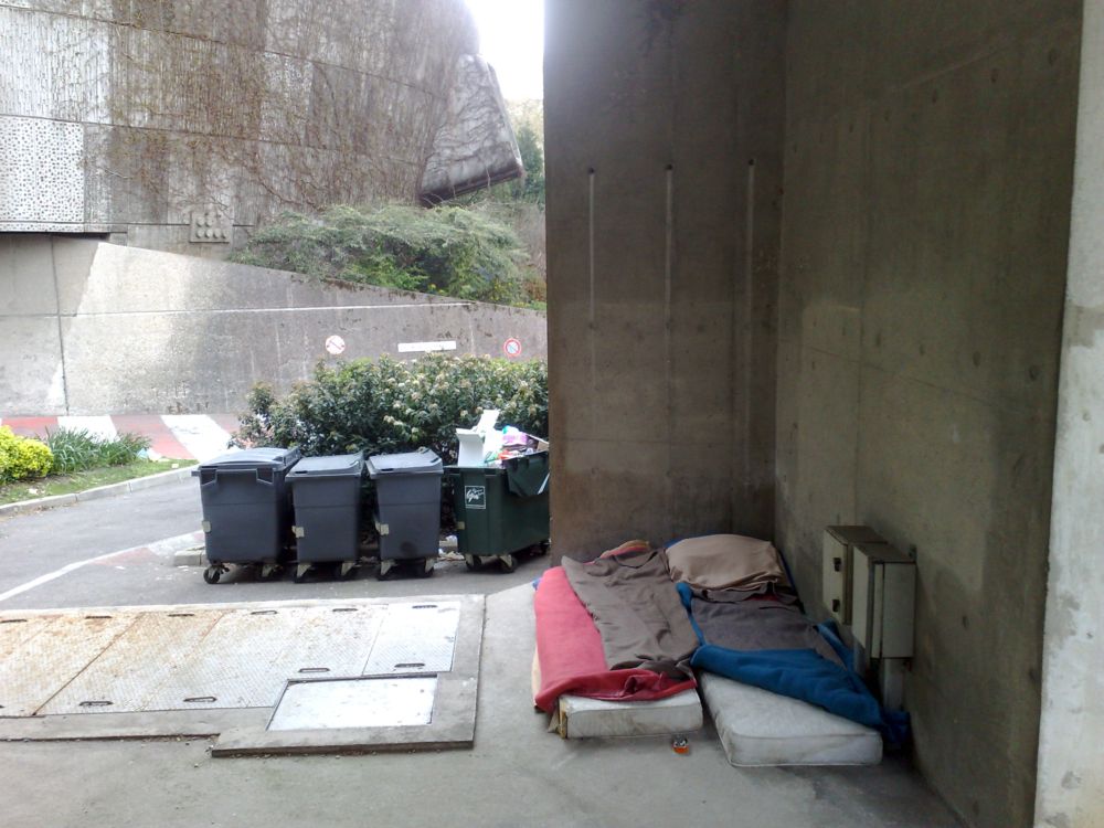 En sortant, au détour de l’escalier pour monter sur la dalle du centre commercial… dans un recoin abrité, deux matelas.. Visiblement, ils servent. C’est là le résultat de ce drame du logement dont l’état ne veut pas entendre parler..