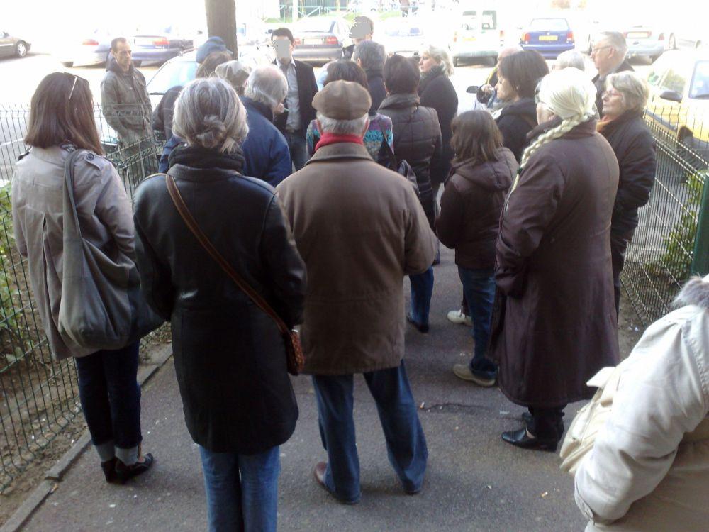 A l’appel des communistes et du réseau d’alerte contre les expulsions, les militants se rassemblent devant la porte avant 8h.