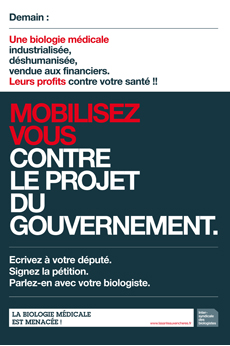 L’intersyndicale des biologistes lance un appel aux citoyens, aux patients et aux biologistes pour refuser la réforme de la biologie médicale préparée par le gouvernement, réforme qui ouvre ce marché aux intérêts de grands groupes financiers…