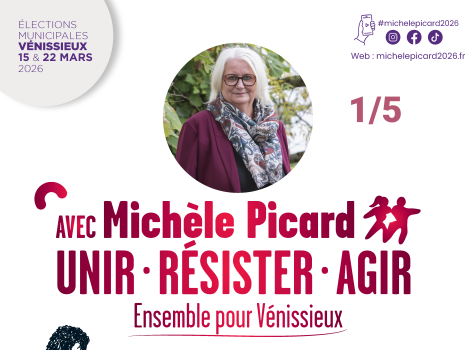 Nous appelons les citoyens, les forces politiques et sociales qui refusent cette société dure et injuste, à se retrouver pour une ville solidaire et fraternelle, utile aux Vénissians.