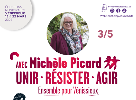 Nous appelons les citoyens, les forces politiques et sociales qui refusent cette société dure et injuste, à se retrouver pour une ville solidaire et fraternelle, utile aux Vénissians.