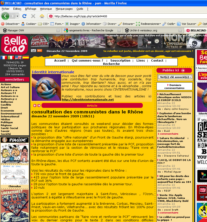 • Viré de Besson et de Bellaciao… 30 novembre 2009 19:38, par Pascal Brula