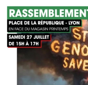 Pour Gaza, pour la Palestine Samedi 27 juillet - 15h Place de la République - Lyon